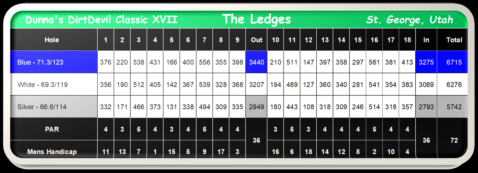 Wednesday, June 3rd - 7:00 AM Shotgun Start (Mesquite Time!) The Ledges Golf Course - St. George, Utah (Scorecard) -