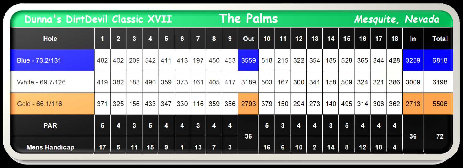 Thursday, June 4th - 7:00 AM Shotgun Start Oasis 'Palmer' Golf Course (Scorecard) -